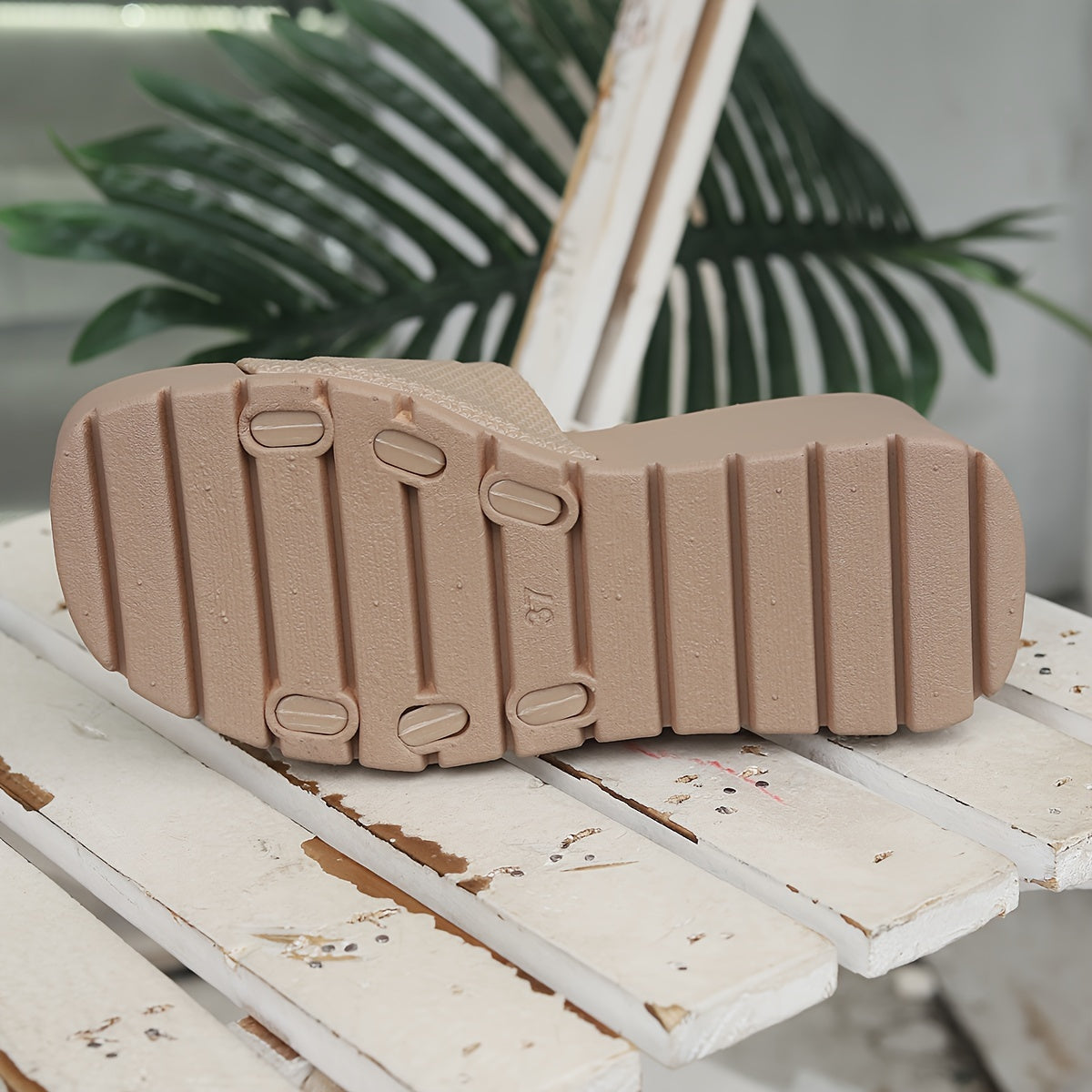De Pippa sandalen combineren moderne elegantie met praktisch draaggemak, waardoor ze de perfecte aanvulling zijn op jouw zomergarderobe. Met een comfortabel wedge-platform bieden ze niet alleen een subtiele verhoging, maar ook optimale ondersteuning voor je voeten. Dankzij het duurzame PVC-materiaal geniet je van langdurig draagplezier, ideaal voor casual uitstapjes, stranddagen of relaxte wandelingen.
