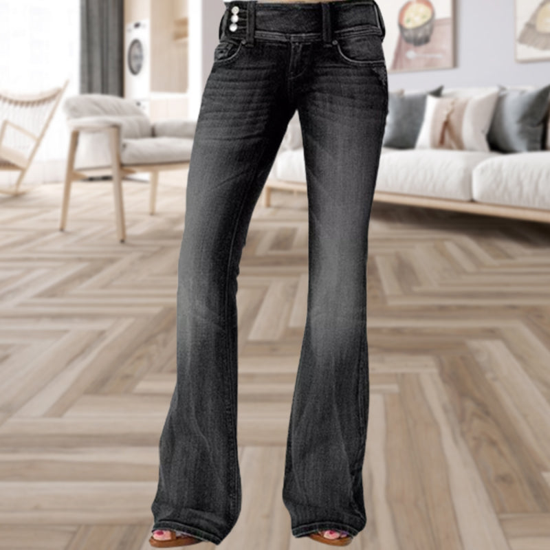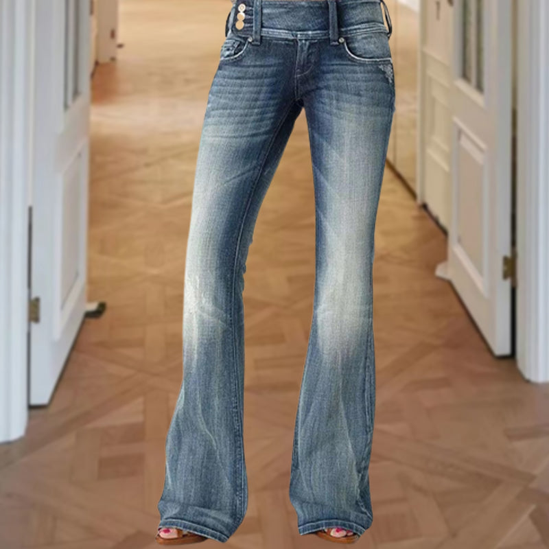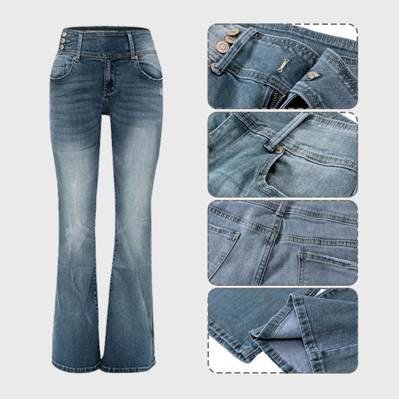 Retro-Chique Bell Bottom Jeans met Unieke Zijknoopjes