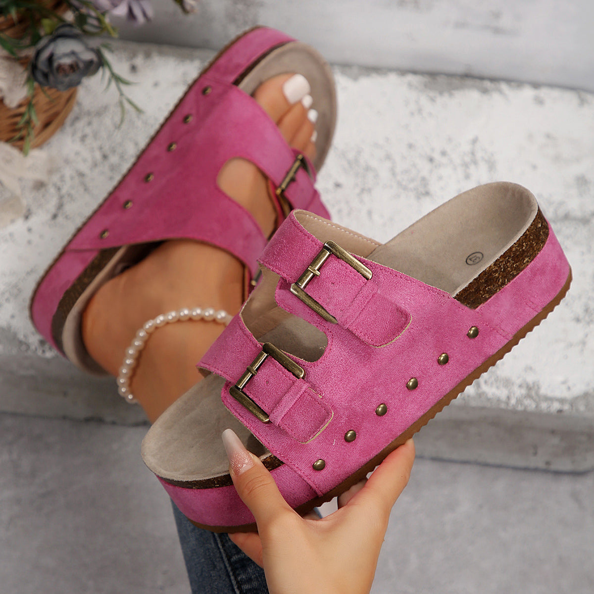 Laat je stijl naar een hoger niveau tillen met de Romey sandalen, ontworpen voor modebewuste vrouwen die geen compromis willen sluiten tussen comfort en elegantie. Deze verfijnde sandalen met een trendy platformzool en dubbele gesp bieden een chique uitstraling, terwijl ze je voeten optimaal ondersteunen.