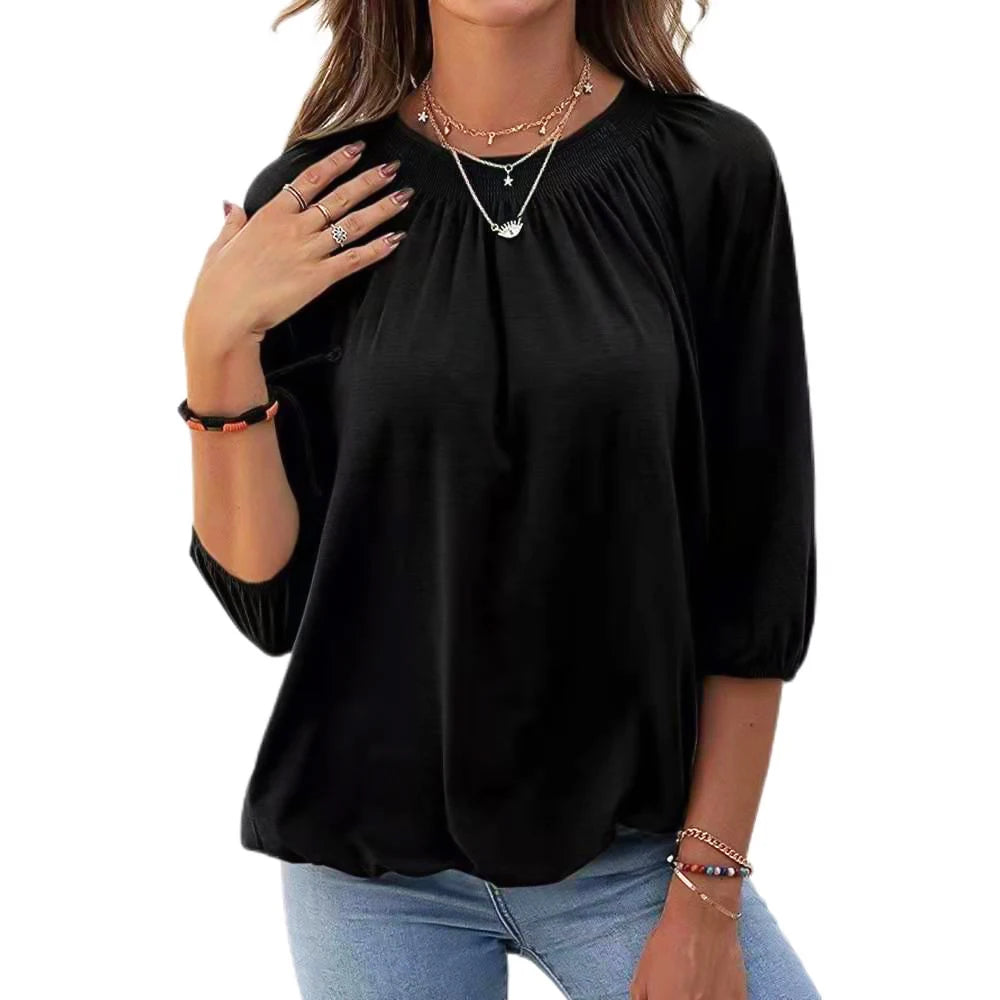 Stijlvolle Ronde Hals T-Shirt met 3/4 Mouwen - Flatterend voor Elk Figuur