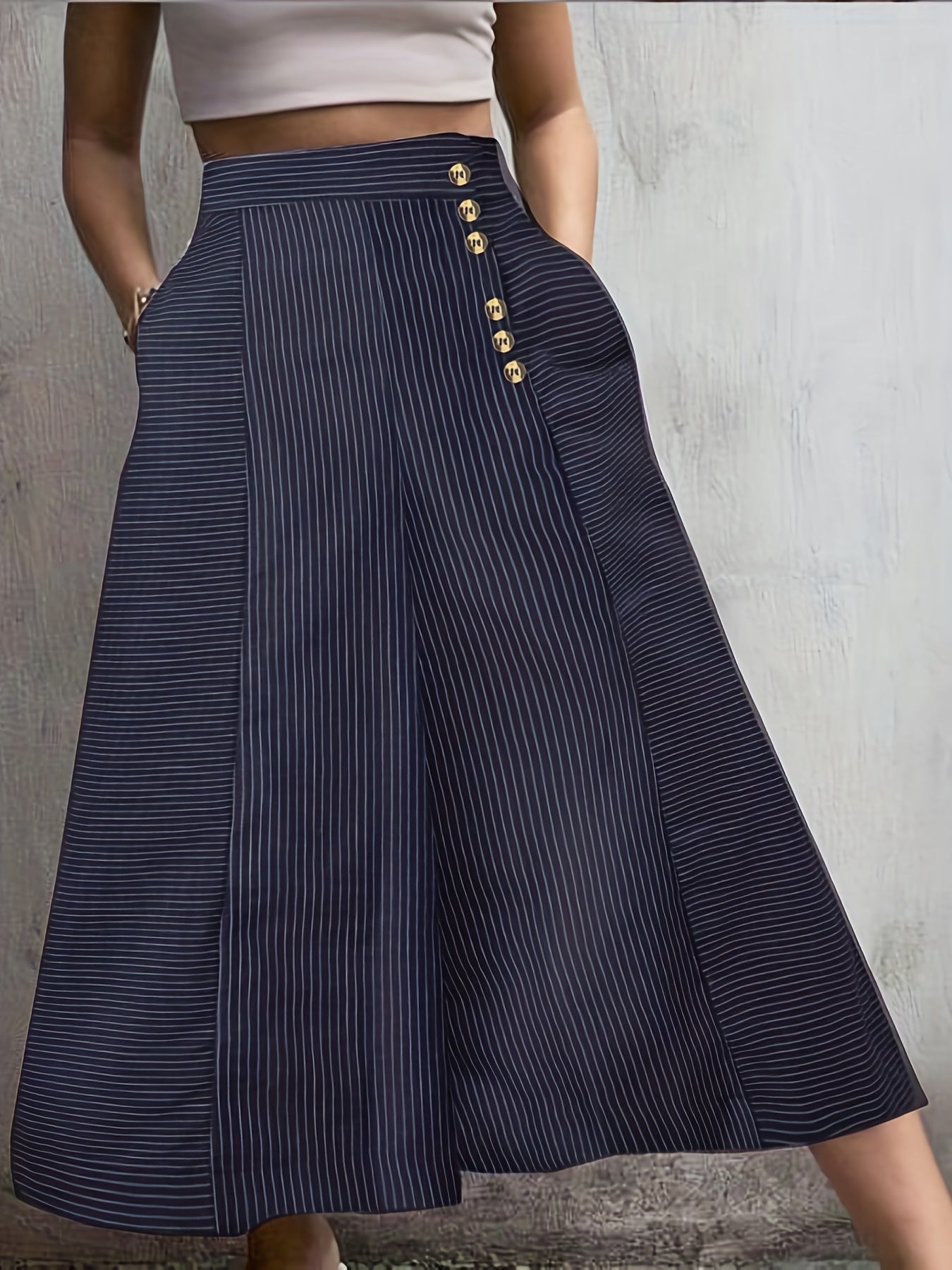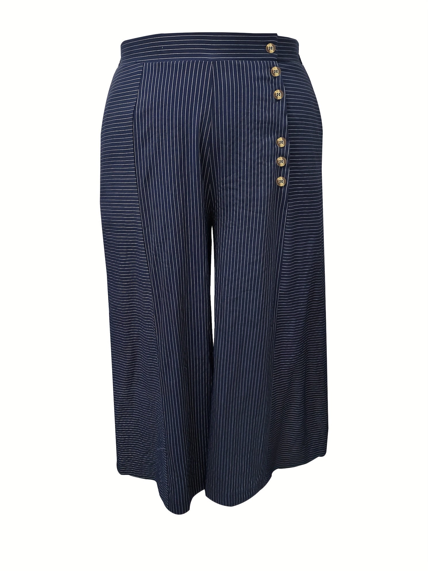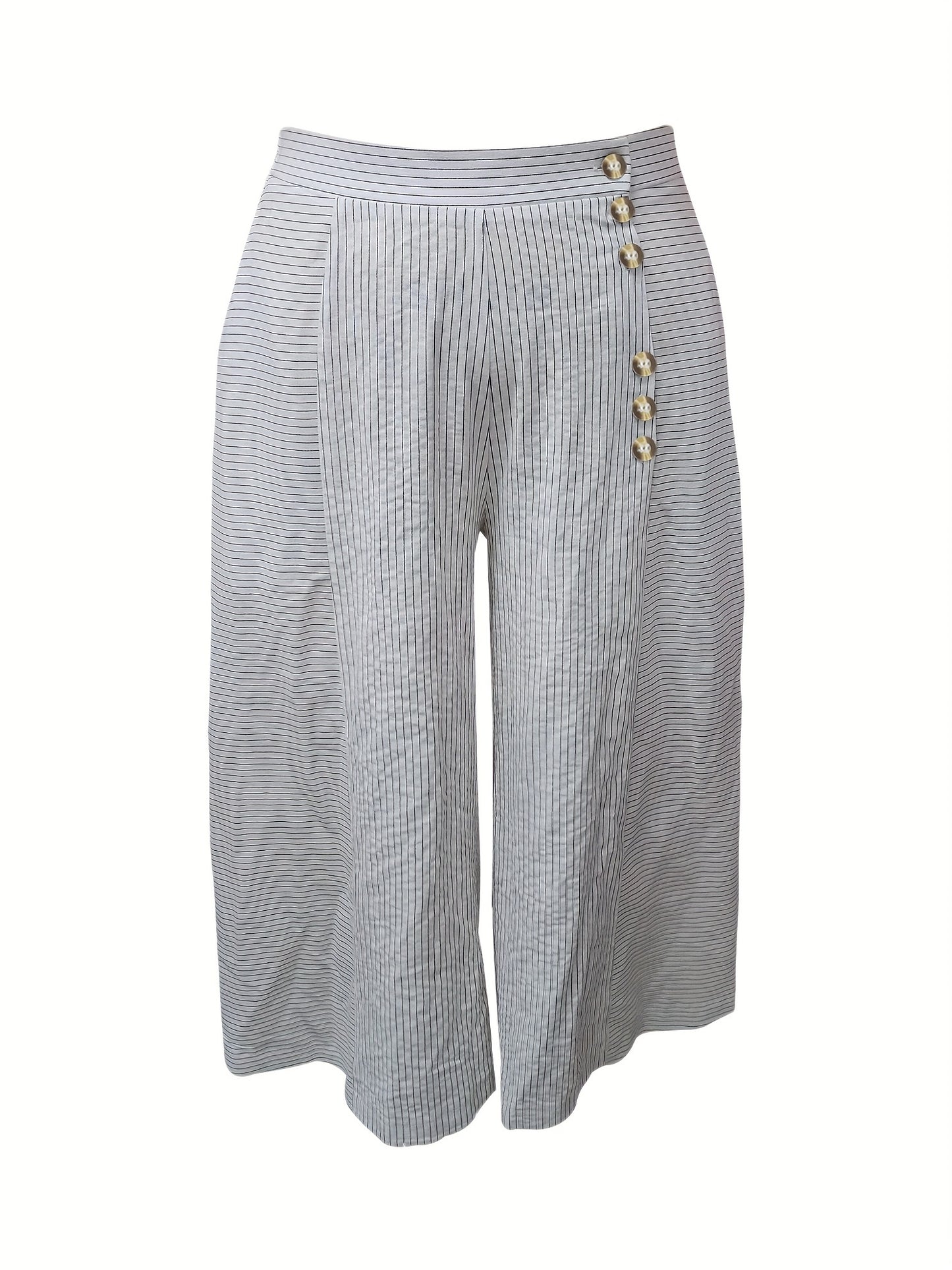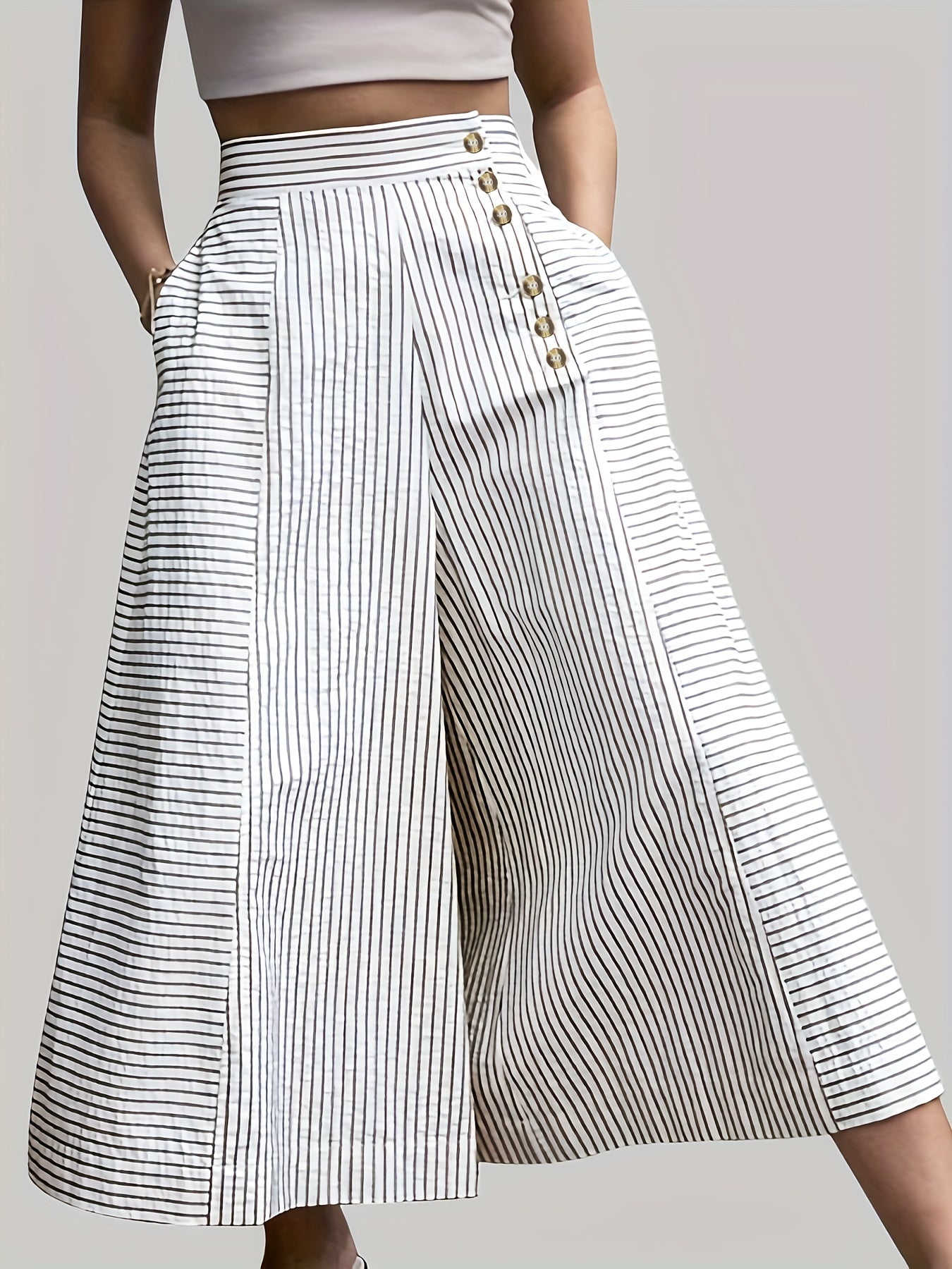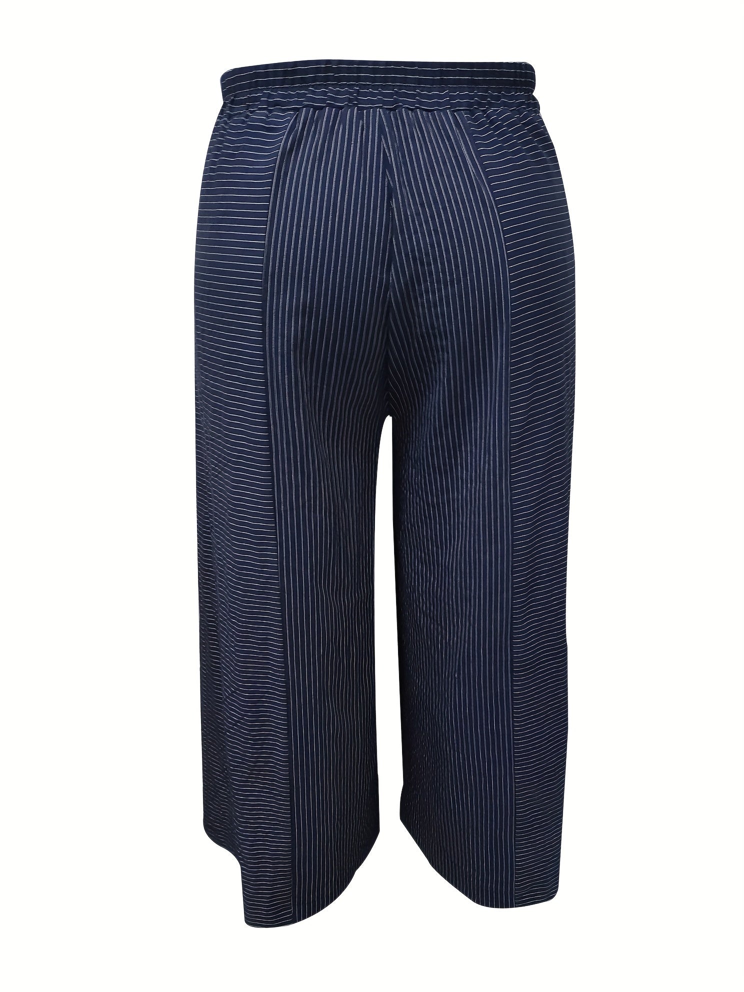 Omarm een moeiteloze stijl met onze Witte Gestreepte Broek. Deze casual plus size broek met hoge taille en wijde pijpen biedt een elegante en comfortabele look voor elke gelegenheid in de lente en zomer.