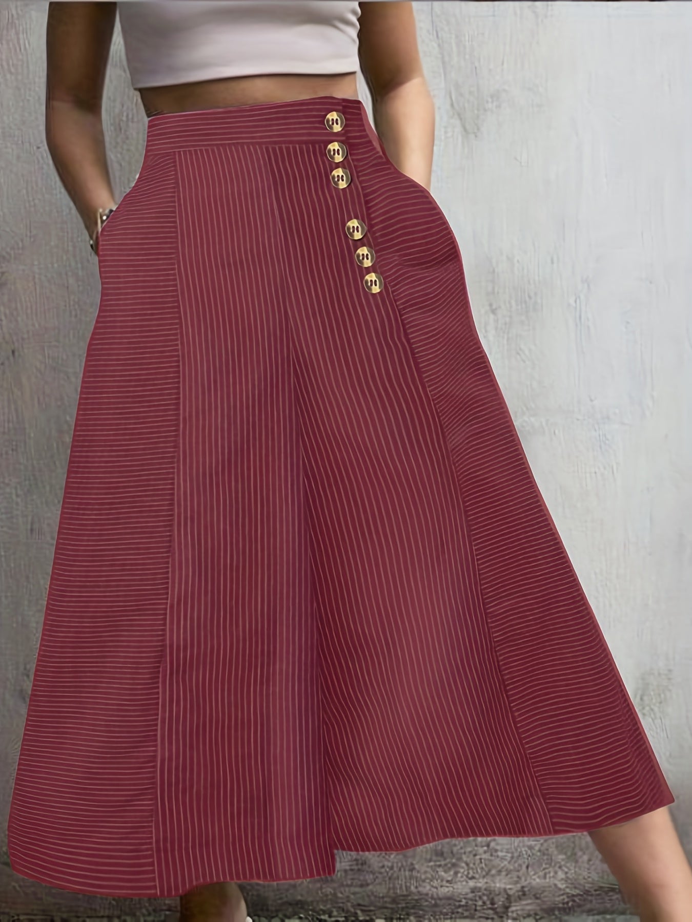 Hoge Taille met Knoopsluiting voor Een Perfecte Pasvorm: De hoge taille met knoopsluiting zorgt voor een flatterende en comfortabele pasvorm, terwijl de wijde pijpen een ontspannen en chique uitstraling bieden. Perfect voor zowel casual als semi-formele gelegenheden.