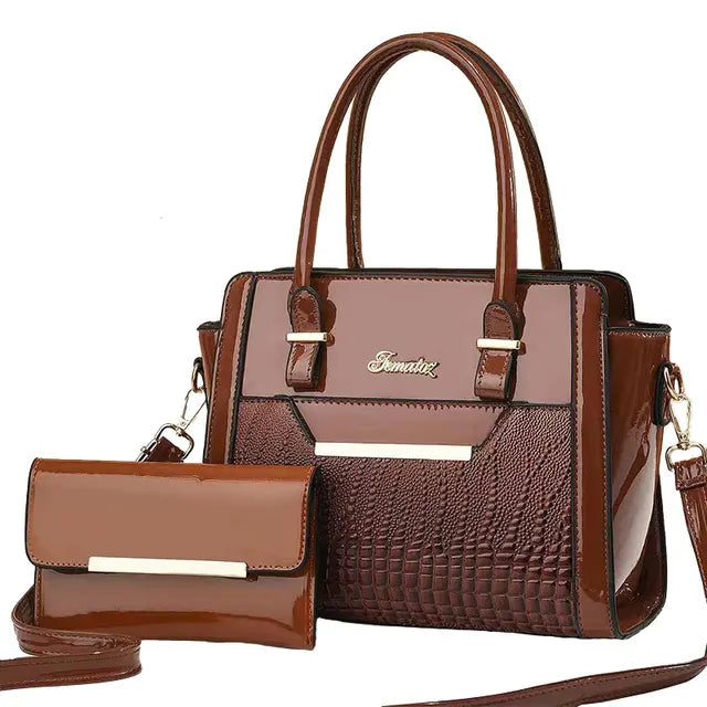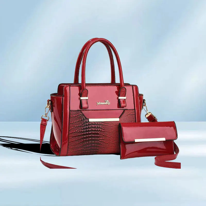 Deze handtas onderscheidt zich door haar grote capaciteit en elegante krokodillenprint. Perfect voor de drukke moeder of de actieve zakenvrouw, het biedt voldoende ruimte voor al je essentiële benodigdheden zonder in te boeten aan stijl.